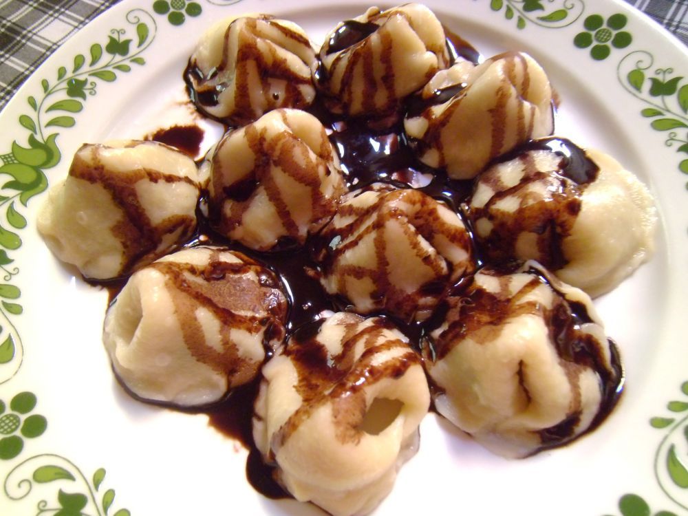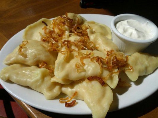 Husos Vareniki 1100.- ( tejes alapu tésztába töltött fűszerezet darálthús, pirított hagymával )